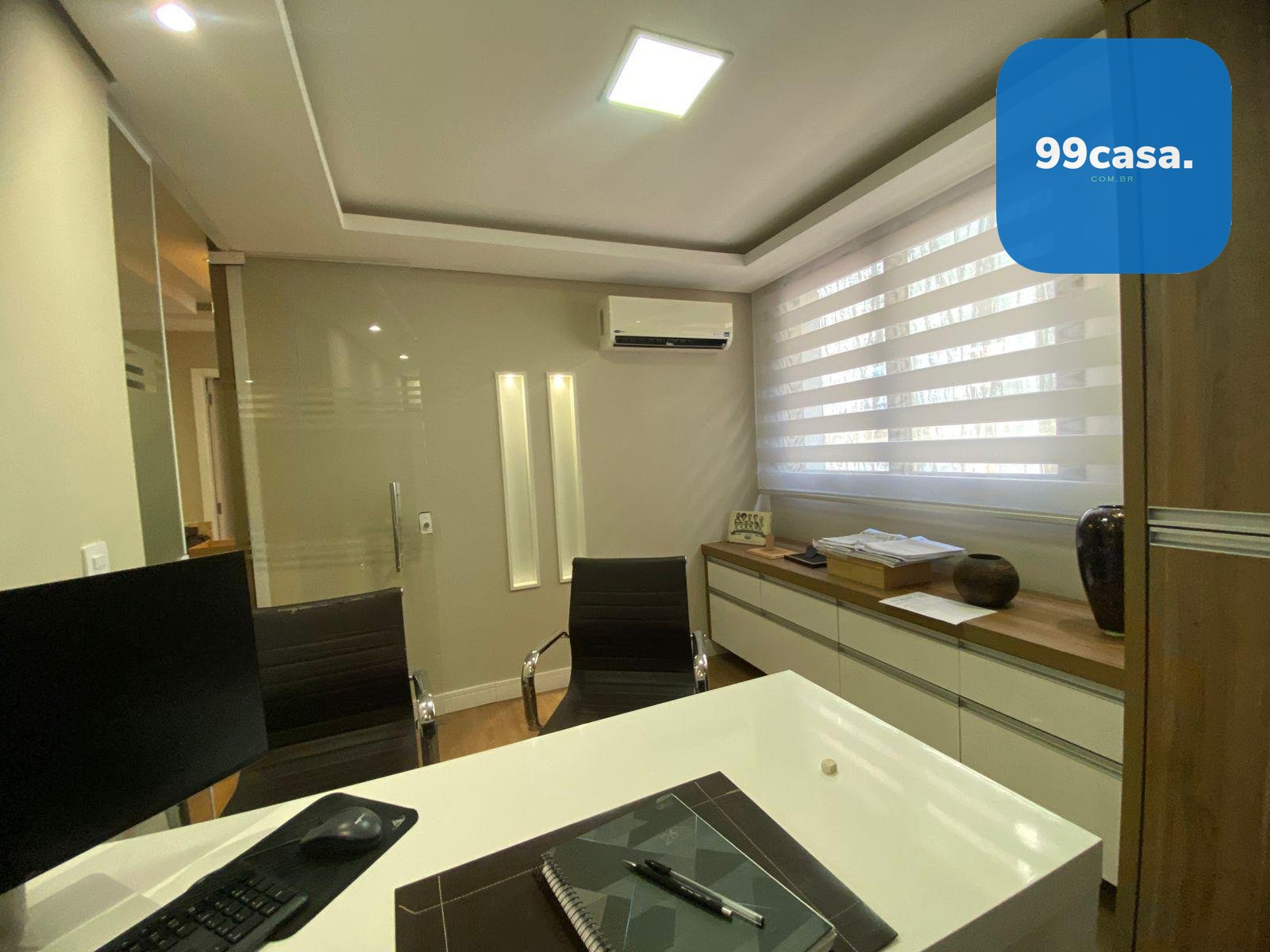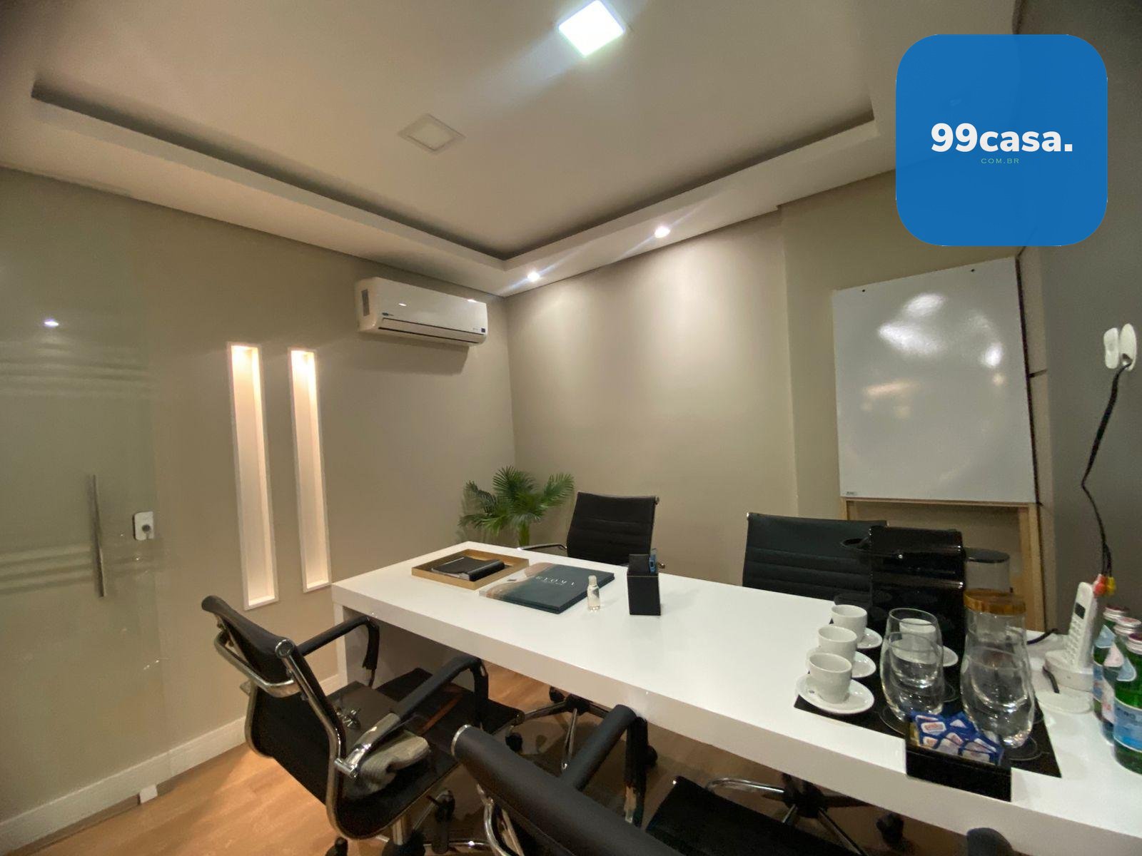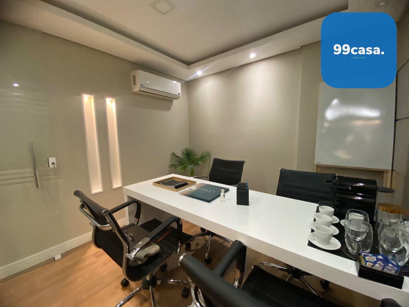 A sala dispõe ainda de ar-condicionado, garantindo conforto térmico durante todo o ano.