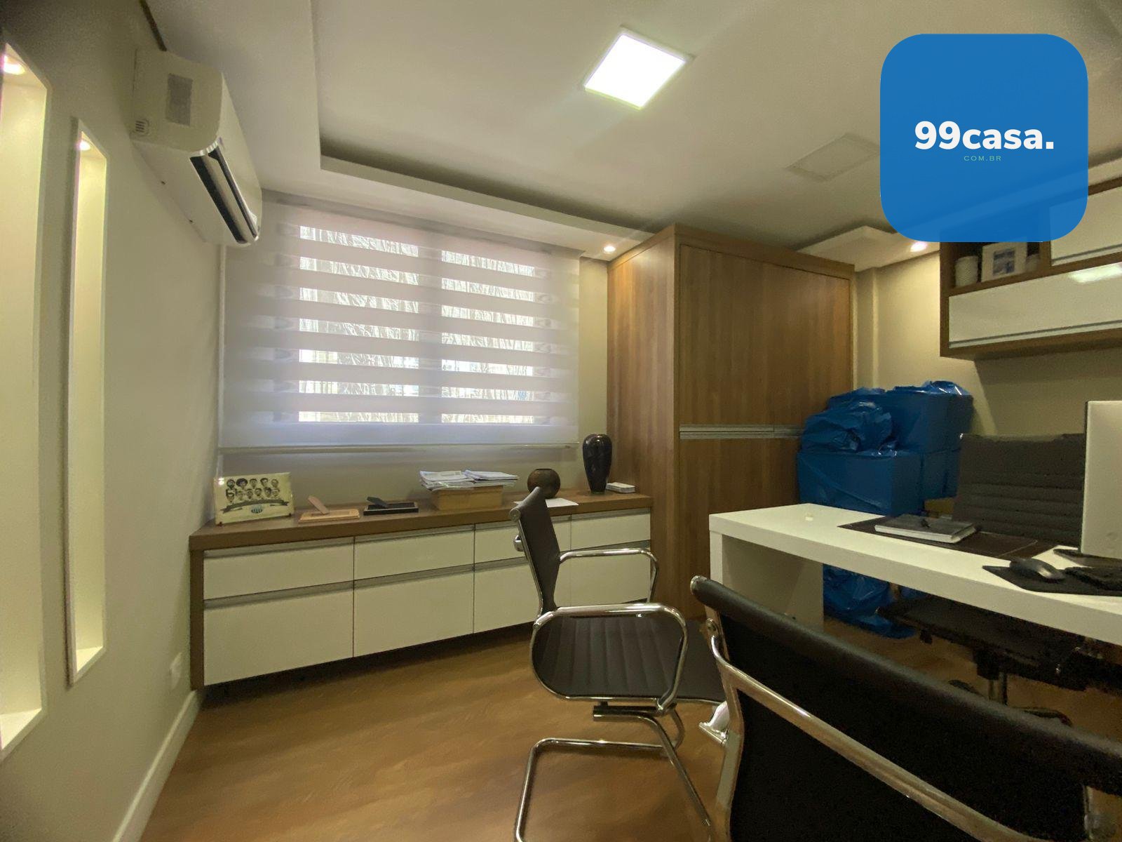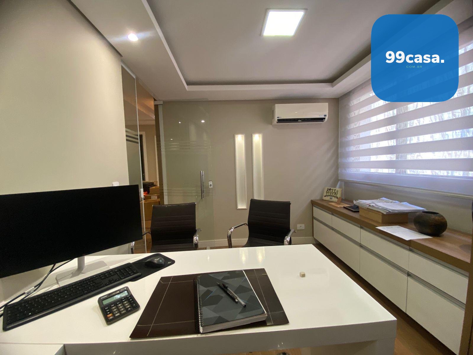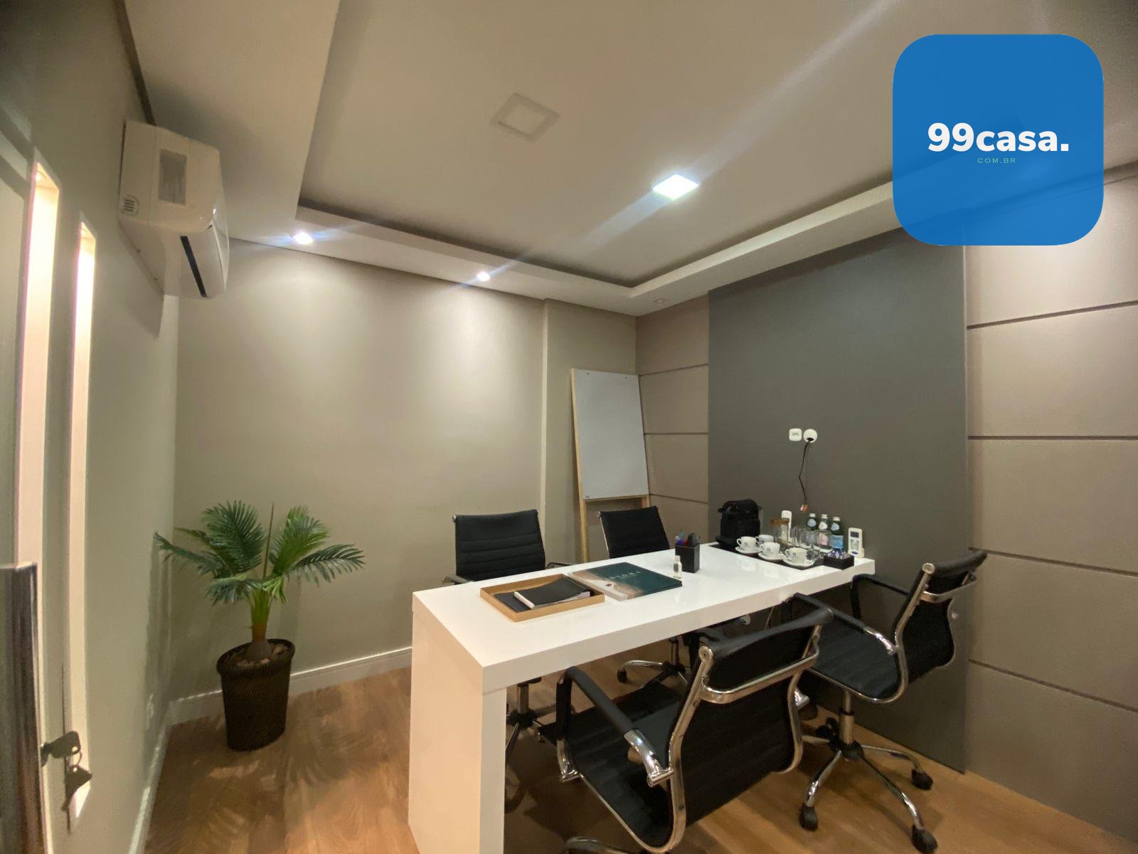 A sala dispõe ainda de ar-condicionado, garantindo conforto térmico durante todo o ano.