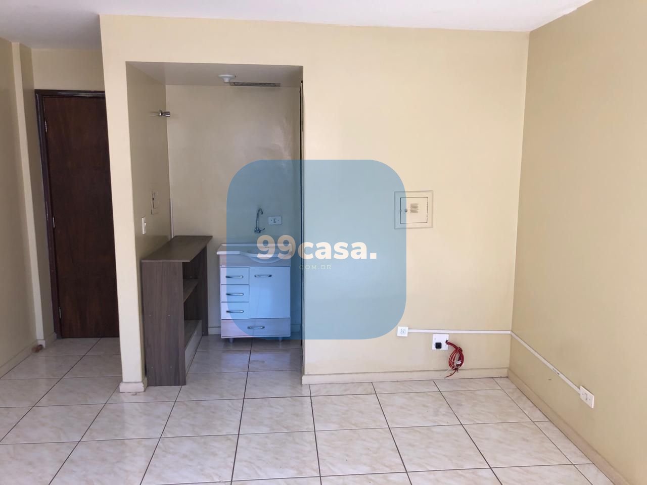 Pequena cozinha funcional para apoio interno.