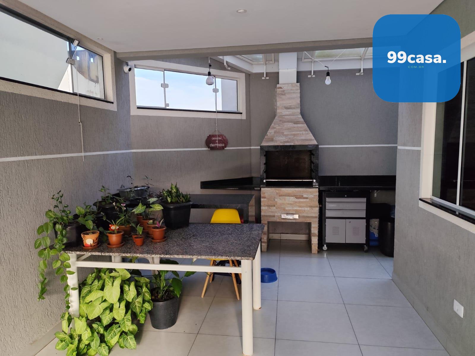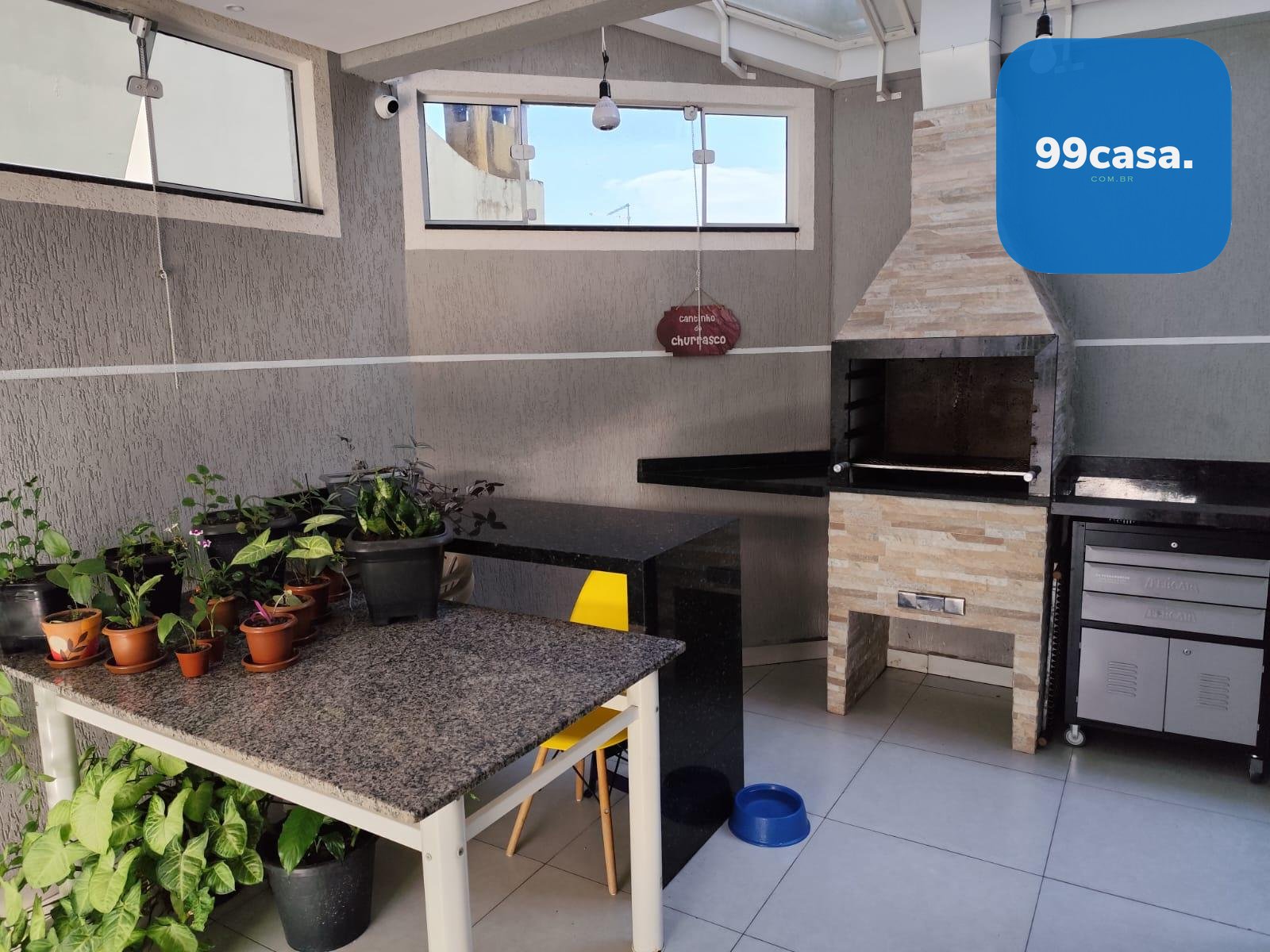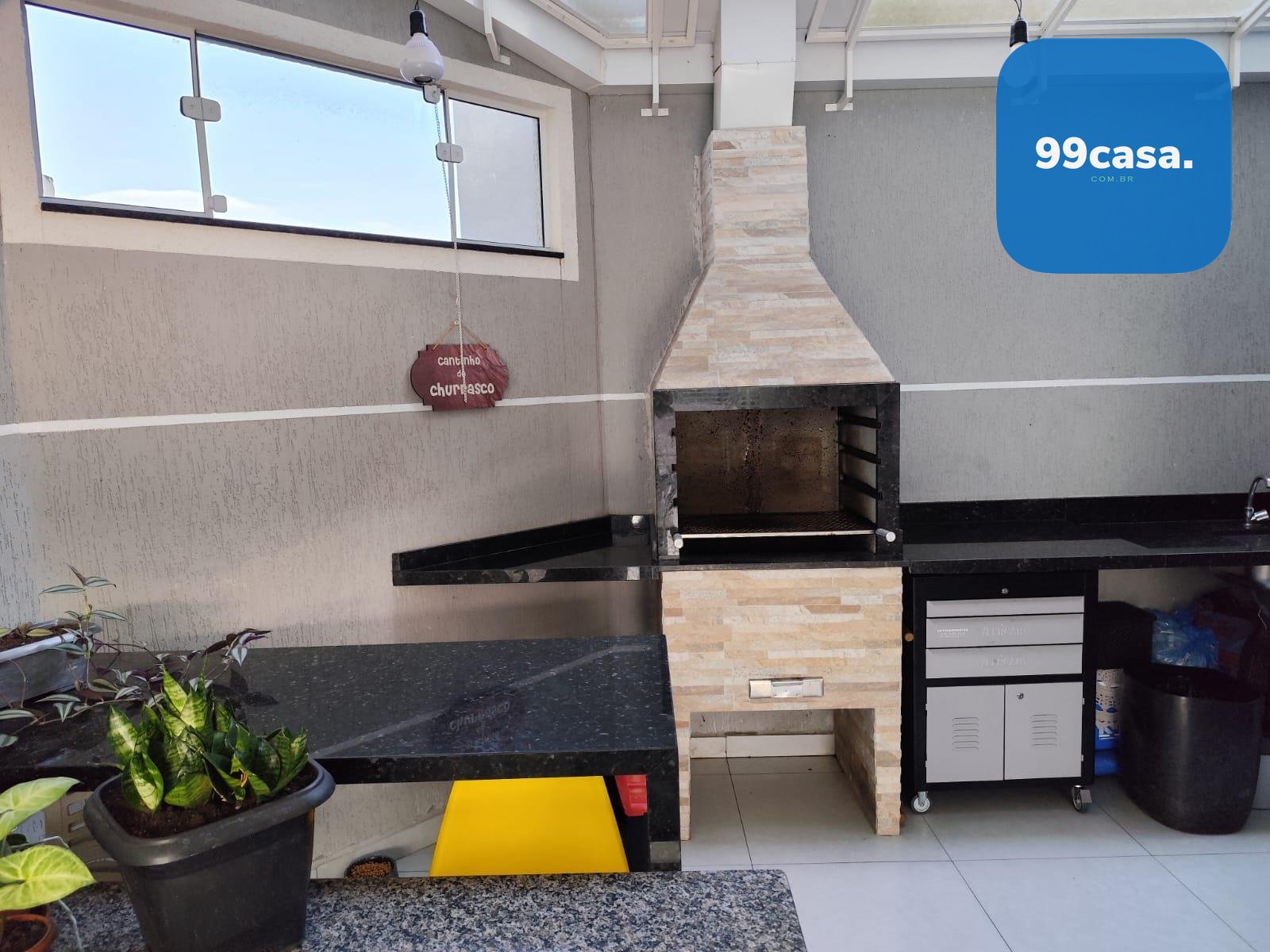 Espaço gourmet com churrasqueira a carvão, coberta, ideal para momentos de lazer