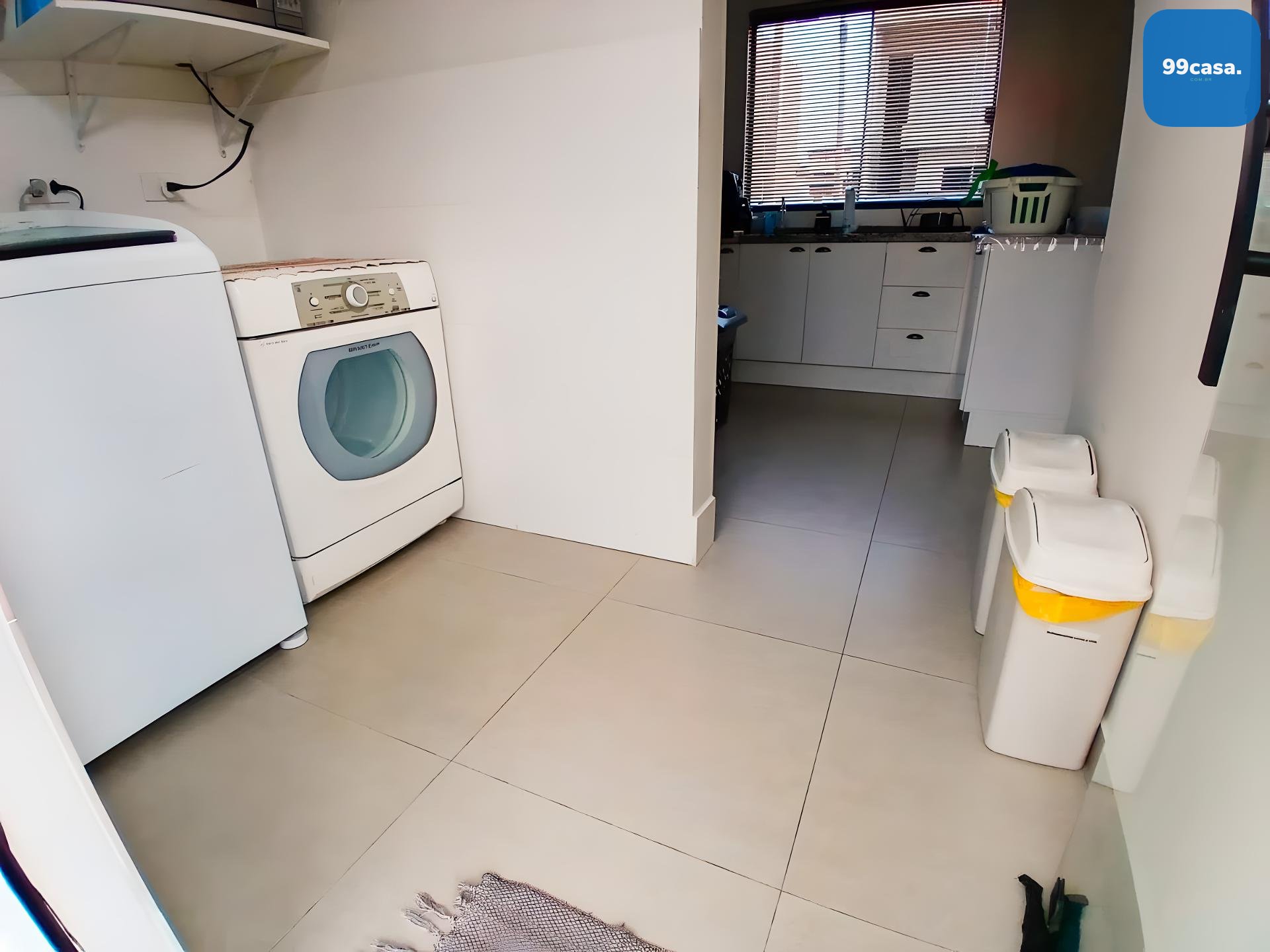 Lavabo com janela e lavanderia coberta e fechada, com tomadas 110v e 220v.