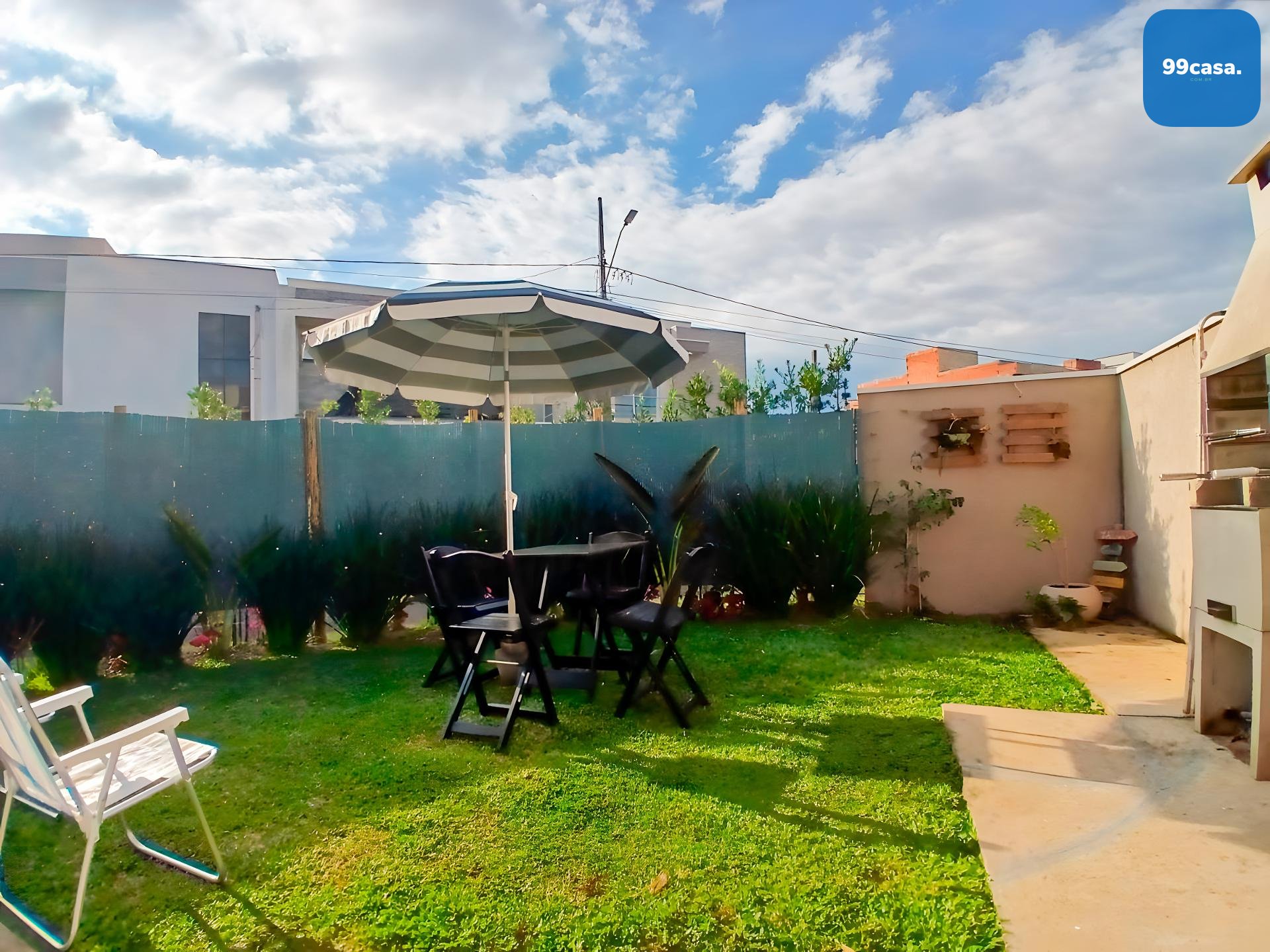 Quintal privativo espaçoso com pia e churrasqueira a carvão, ideal para receber amigos, curtir com a família ou até instalar uma piscina inflável.