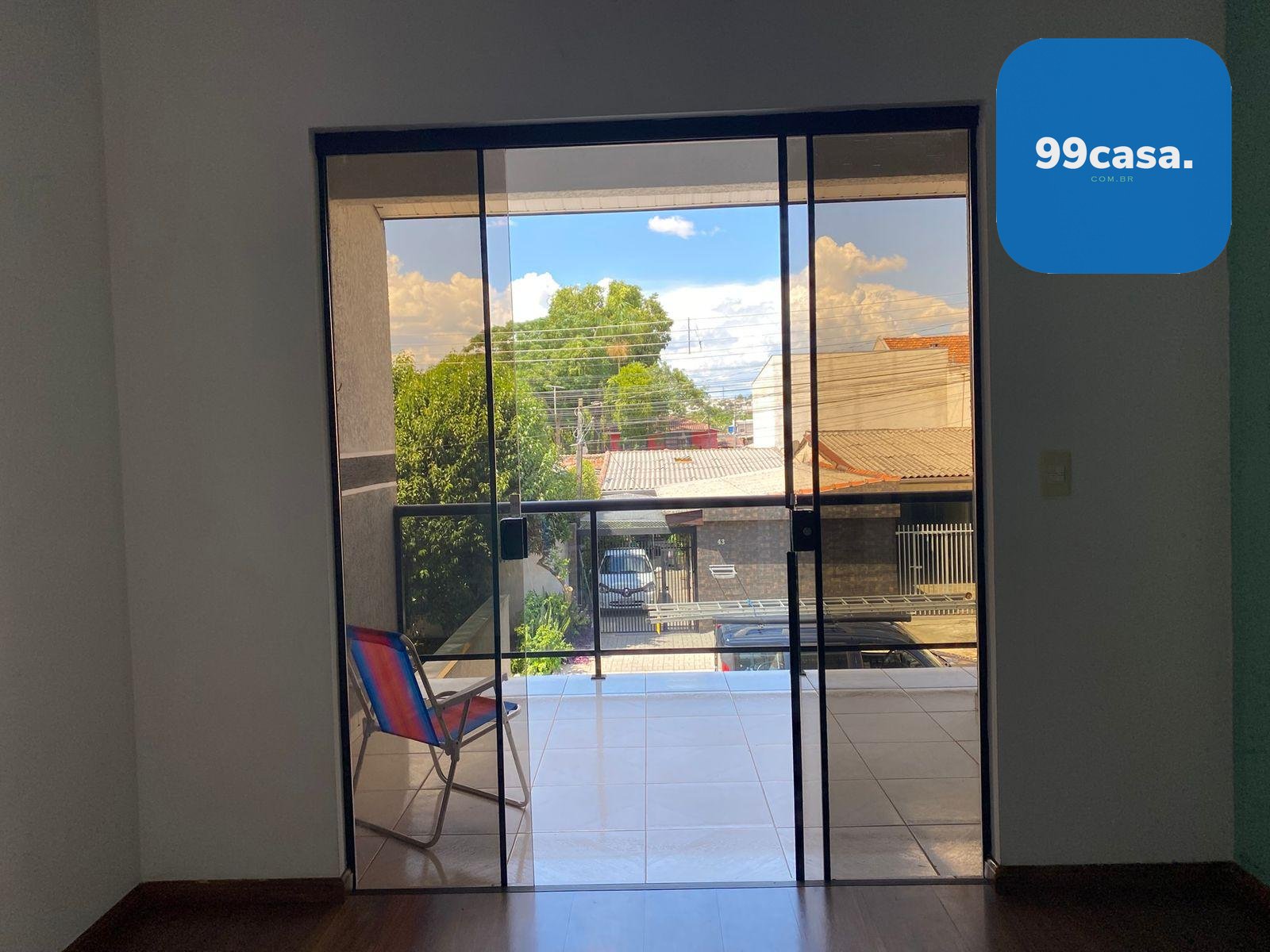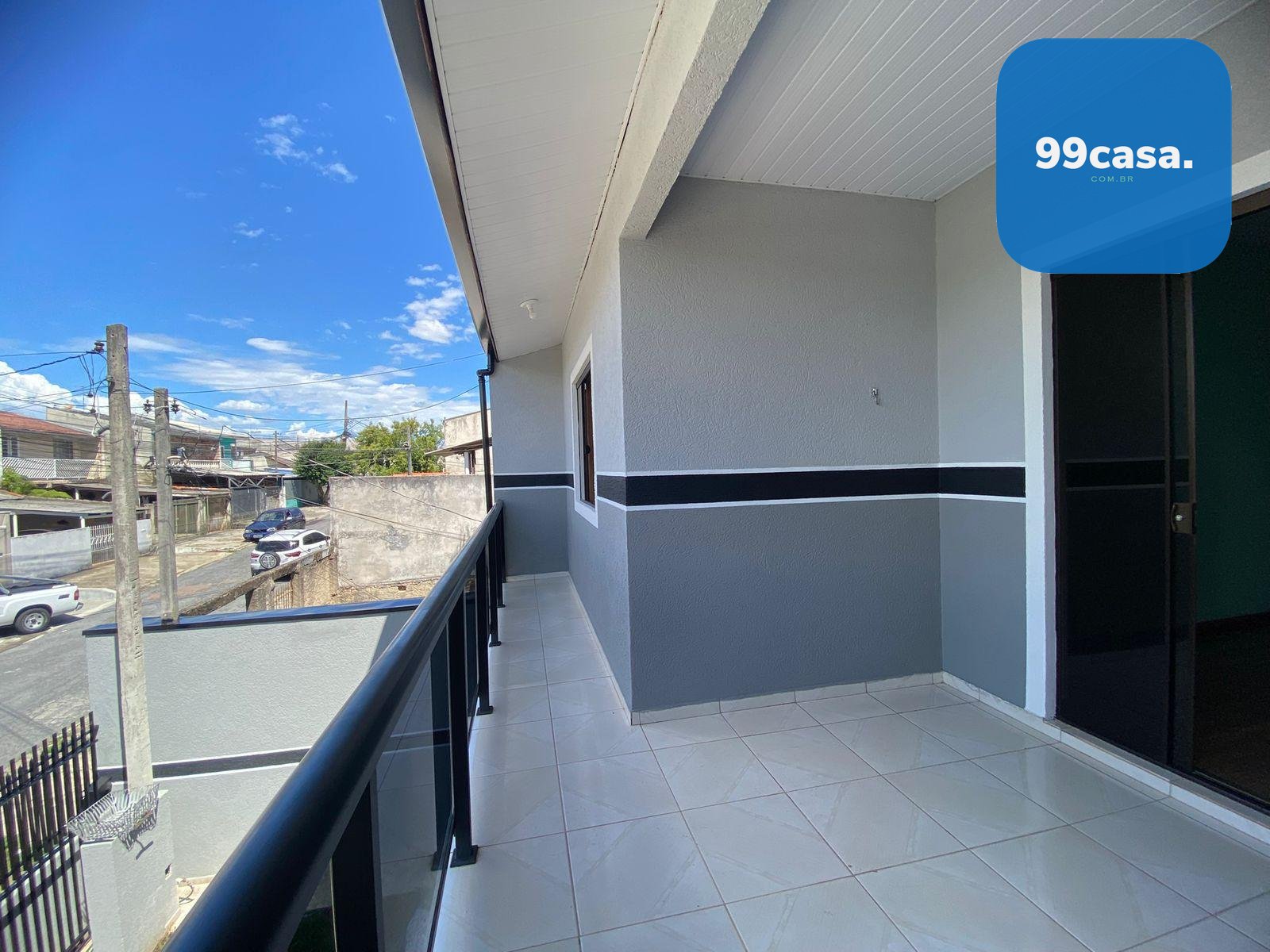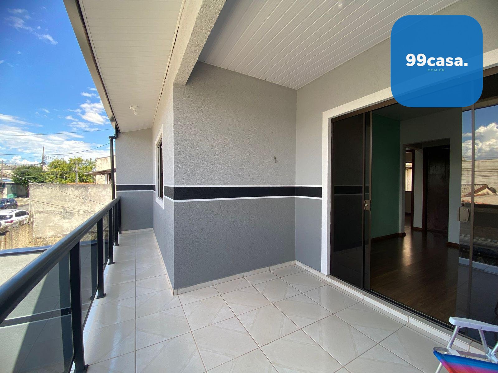 Ampla sacada pra por sua rede para descansar.