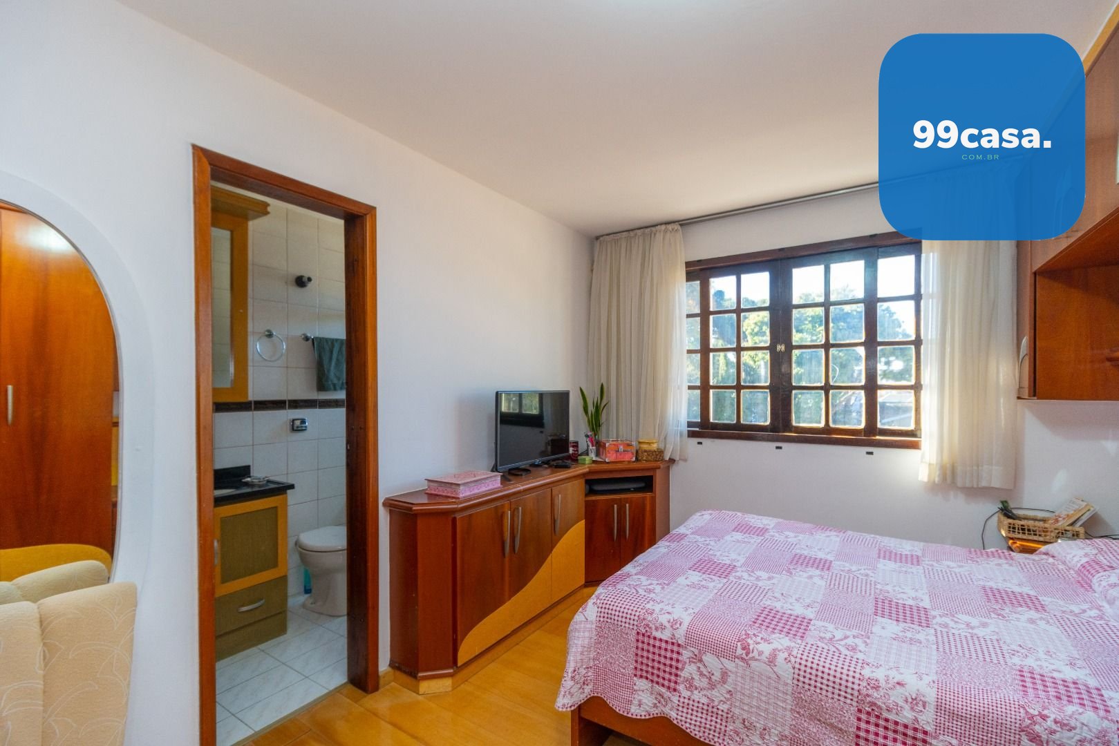 Suíte: Quarto principal com banheiro privativo, oferecendo maior privacidade.