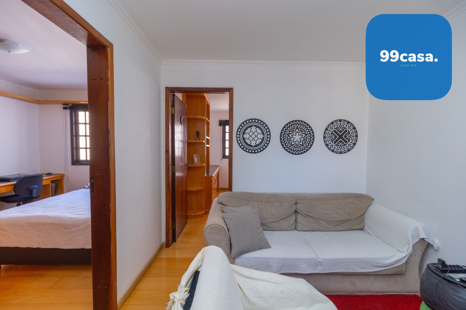Sala íntima entre os quartos: Ambiente acolhedor para momentos de convivência e descanso.