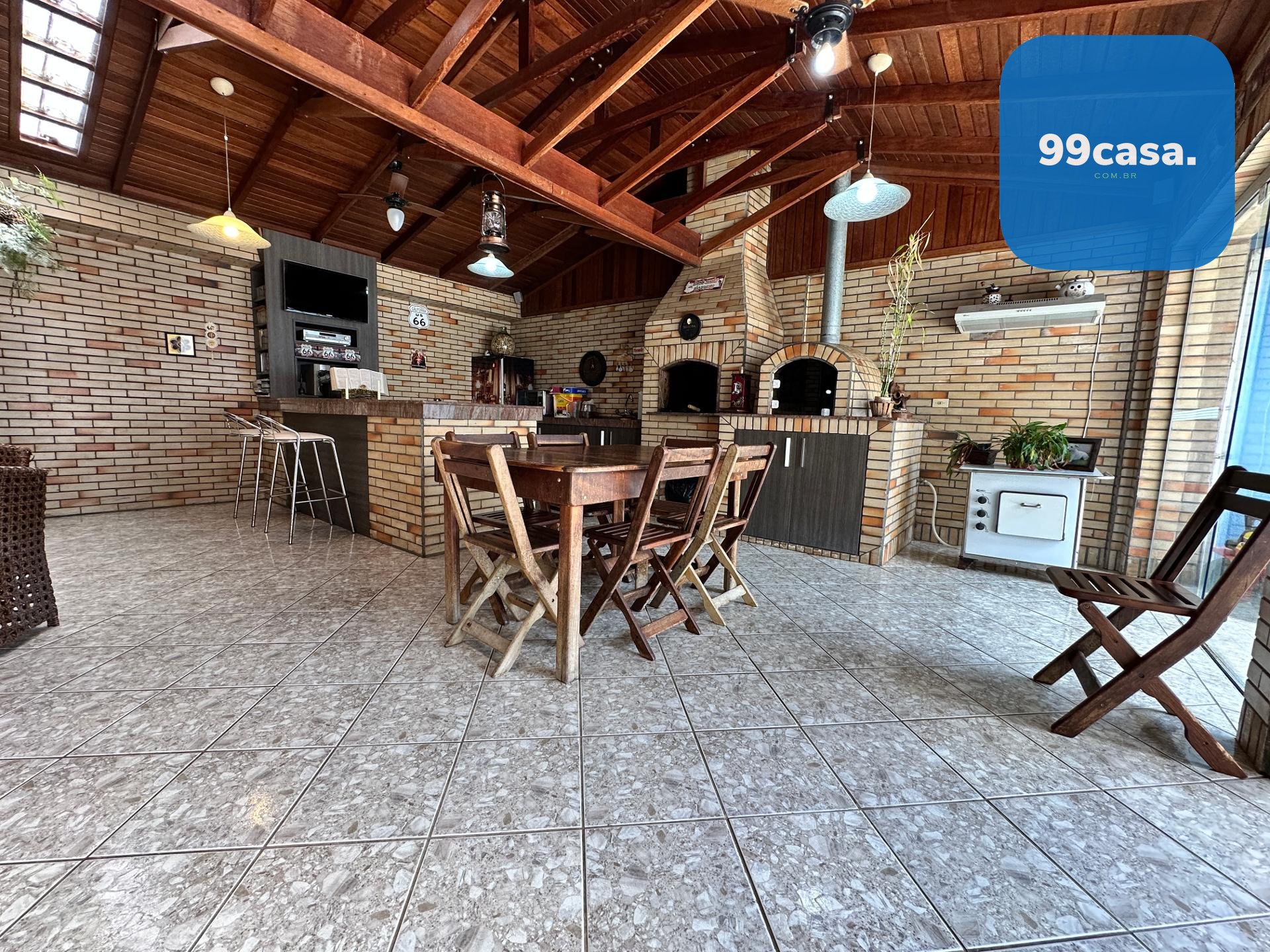 Ampla churrasqueira com espaço ideal para confraternizações e eventos
