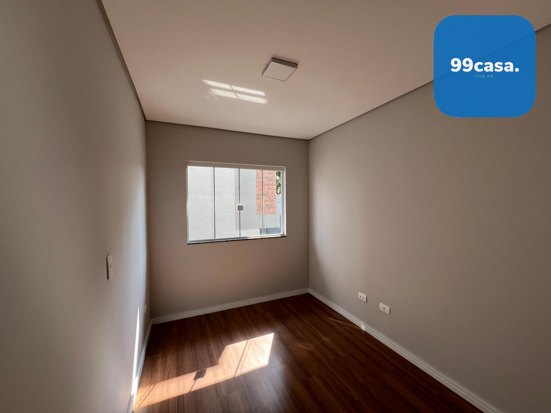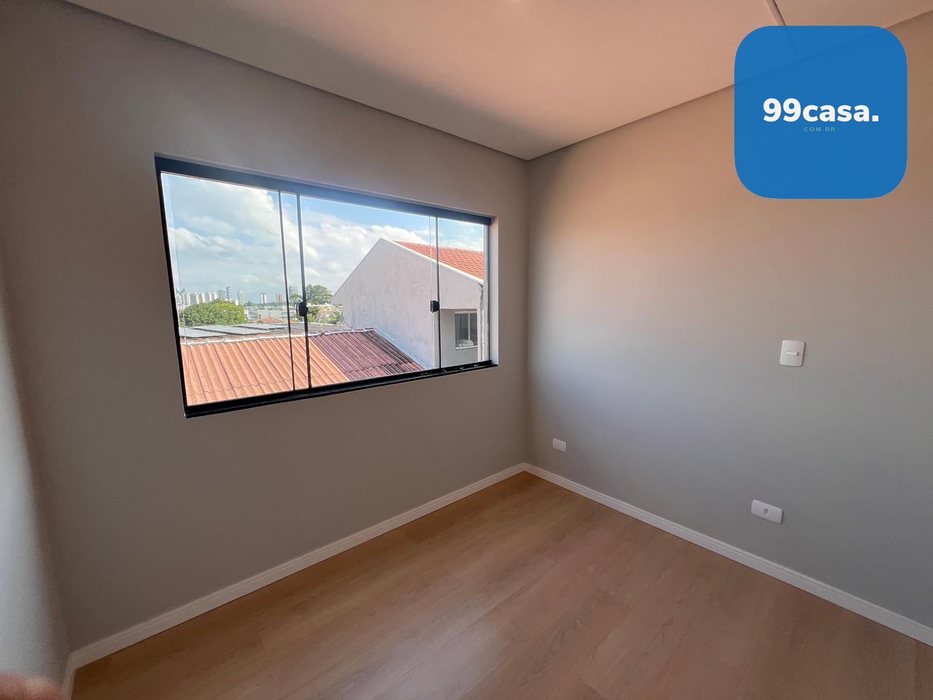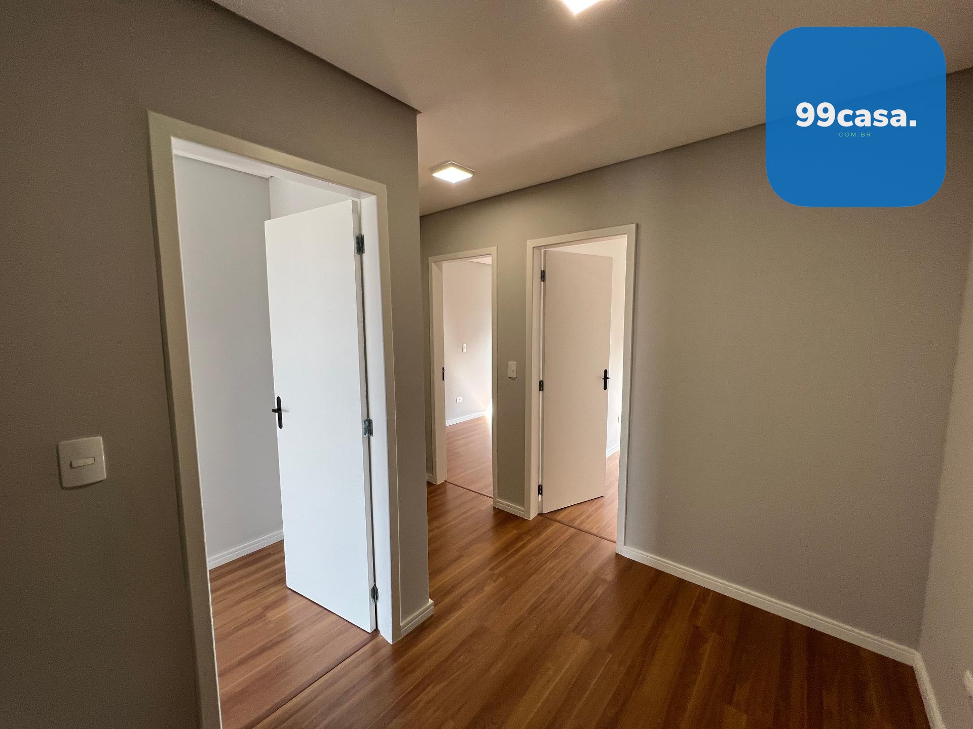 Pavimento superior com 1 suíte e 2 quartos com piso laminado e venezianas blackout, além de banheiro social.