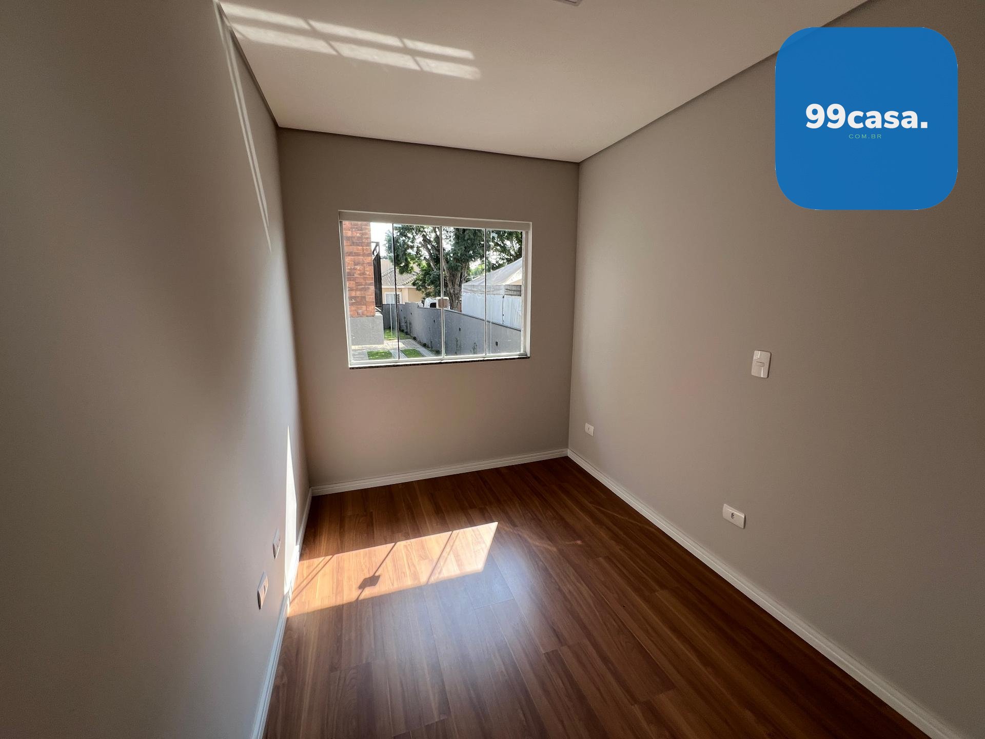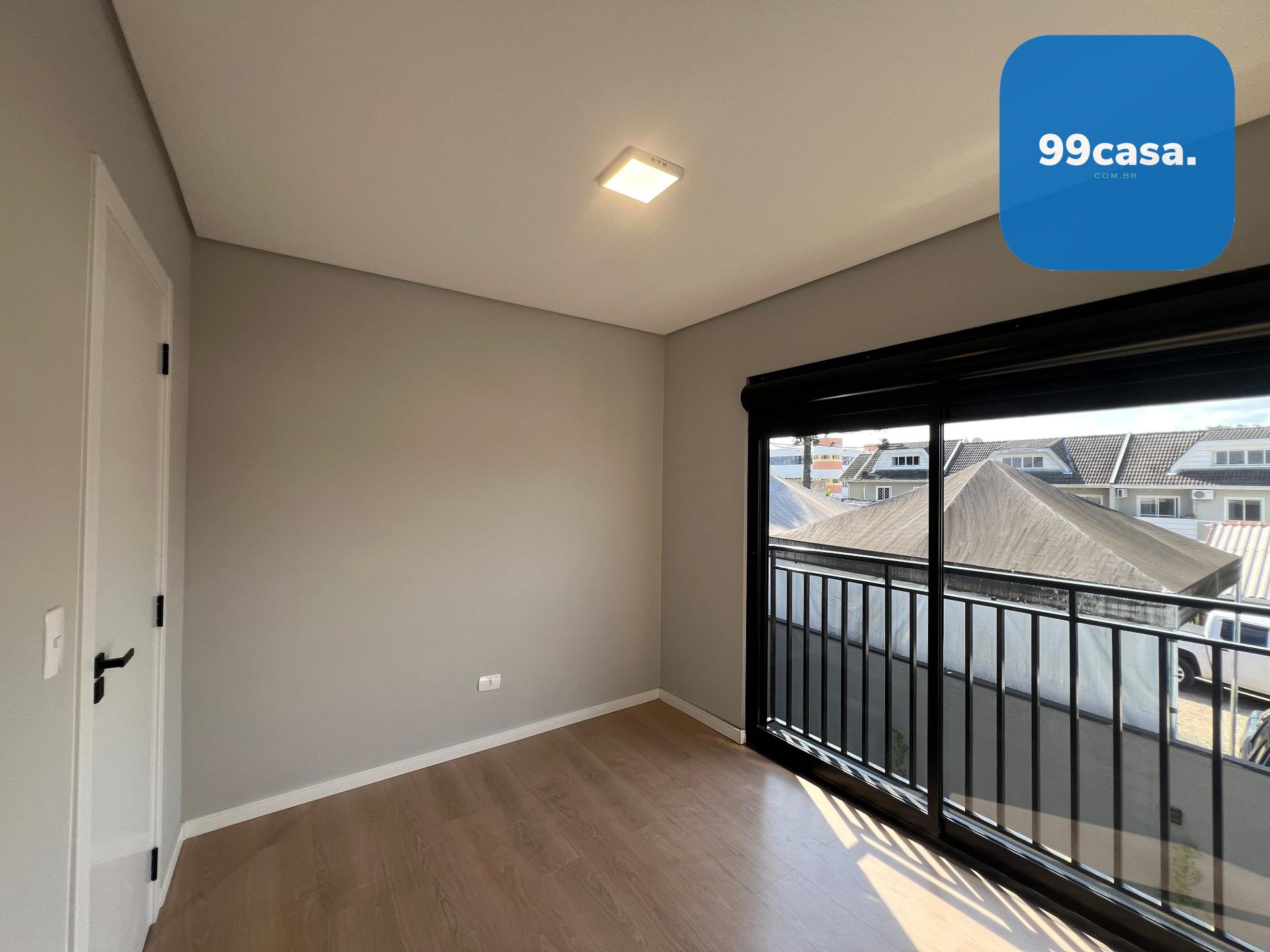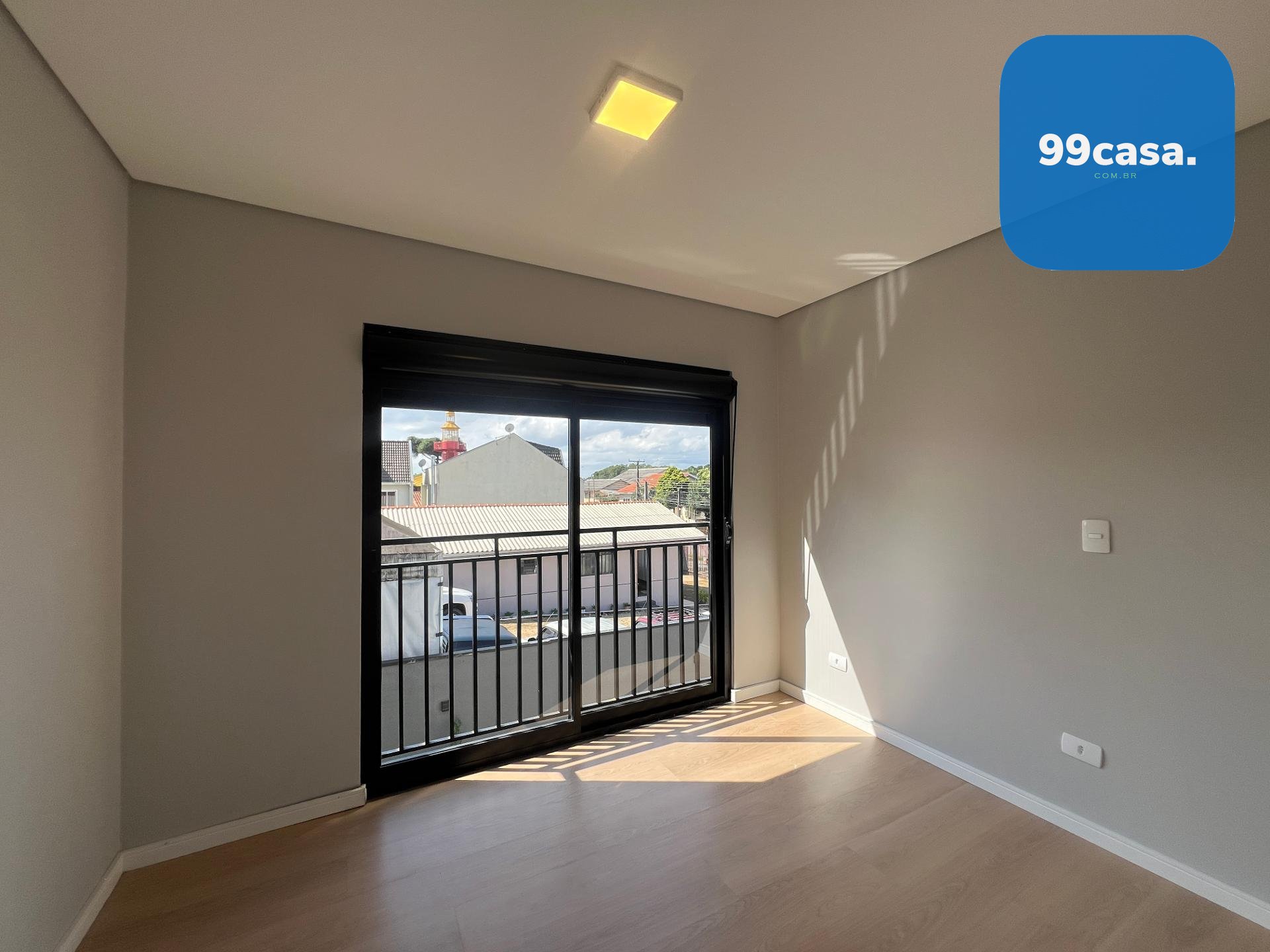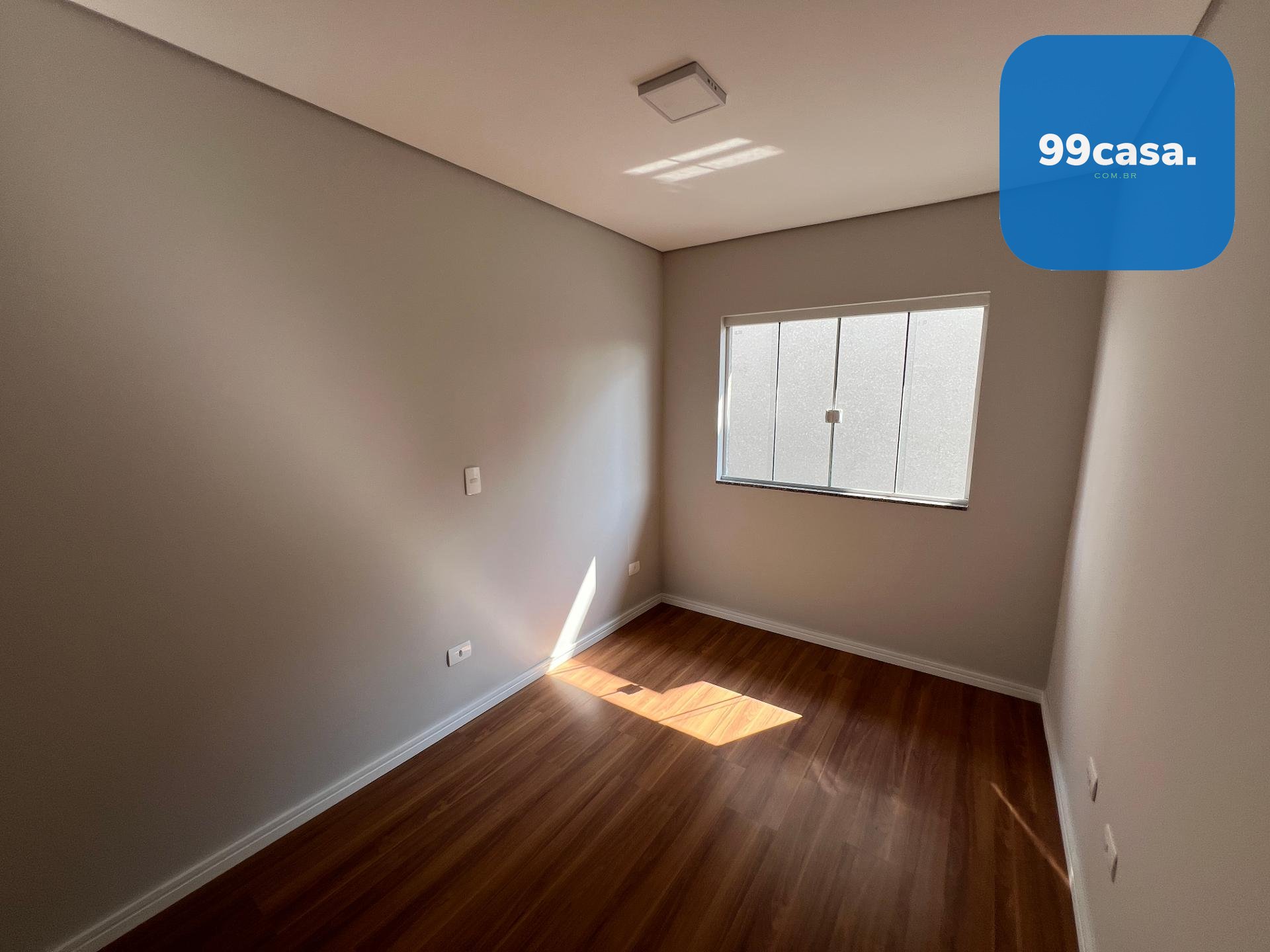 Pavimento superior com 1 suíte e 2 quartos com piso laminado e venezianas blackout, além de banheiro social.