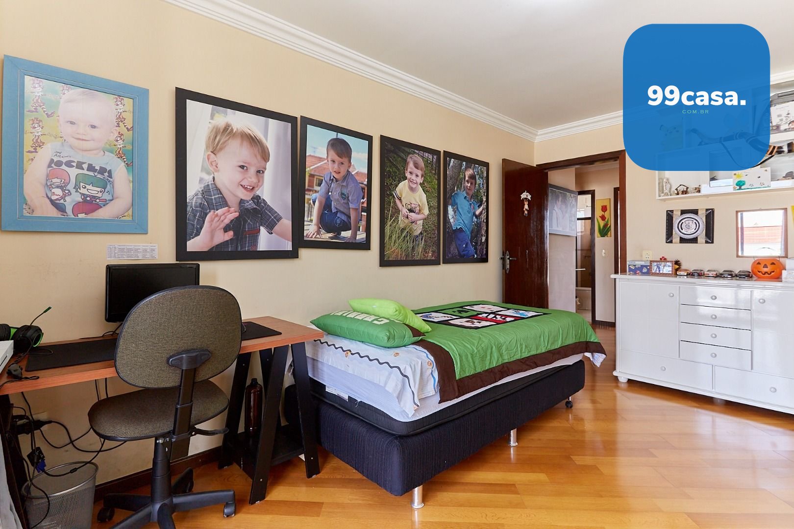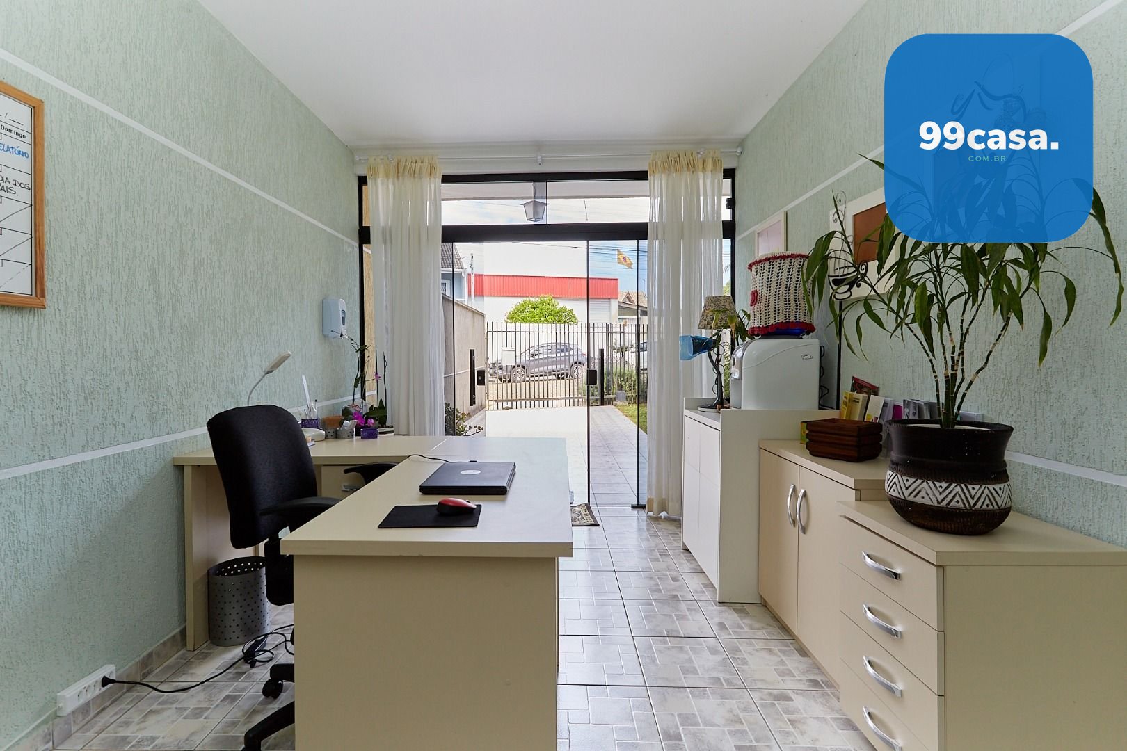 Sala ampla para 2 ambientes. Parte da garagem foi revertida em escritório, mas pode ser revertida novamente para vaga coberta.