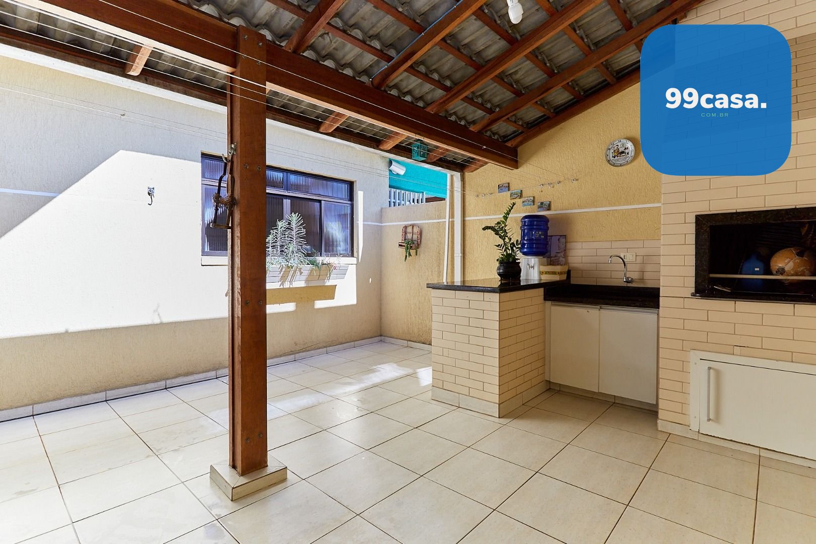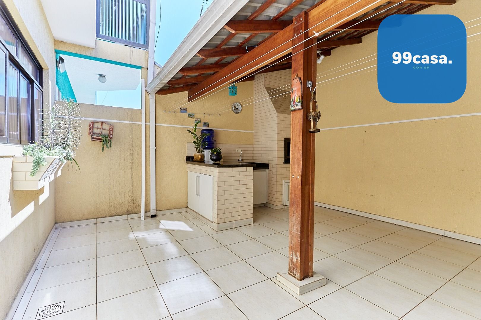 Área nos fundos de +/-27 m², parcialmente coberta, com churrasqueira, sol da tarde e ventilação natural, perfeita para um espaço gourmet.