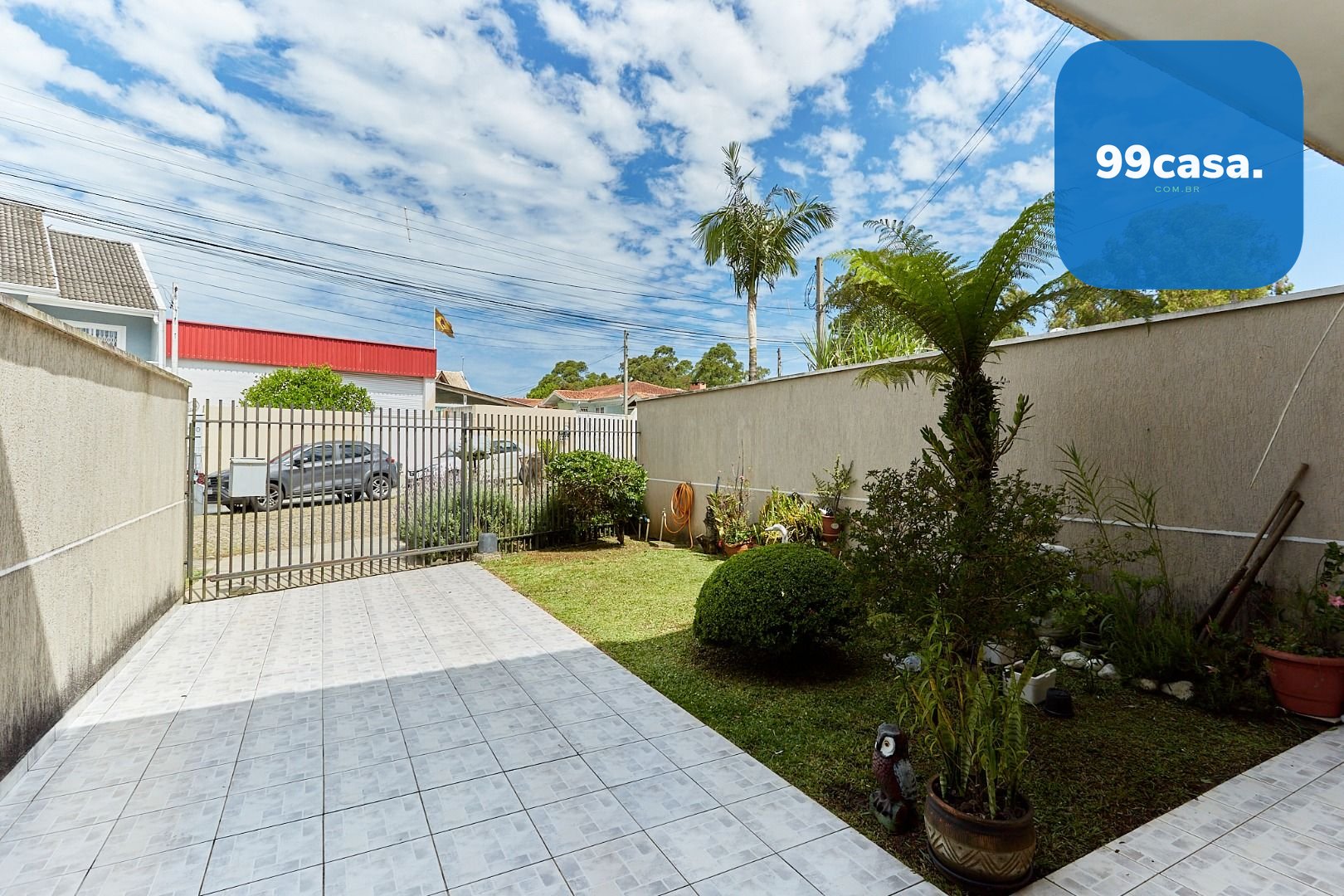 Garagem descoberta para 1 veículo, com possibilidade de ampliação para mais 1 vaga.