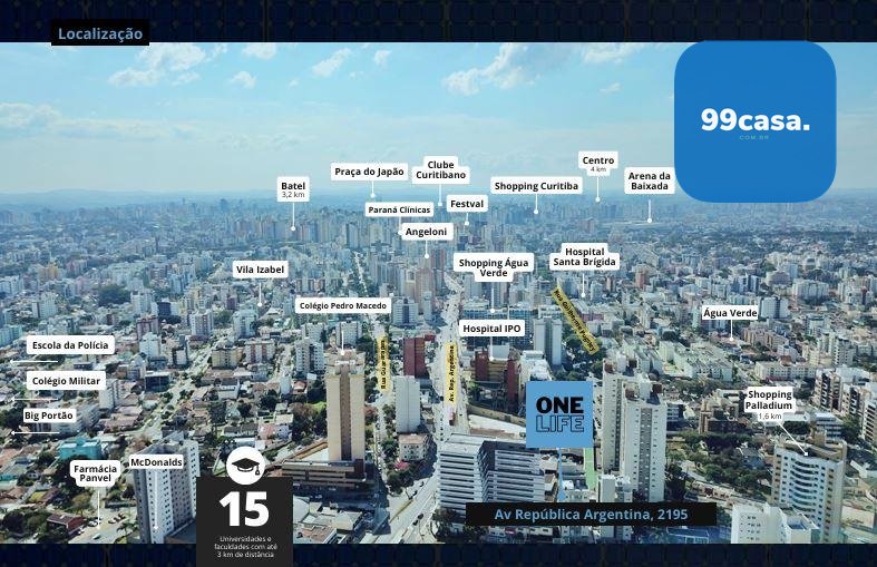 Próximo a IPO, Shoping Agua Verde, Farmácias, comércio, transporte público, serviços e tudo que facilita o dia a dia.