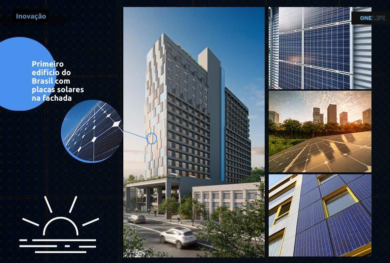 (o 1o edifício do Brasil com placas solares revestindo as paredes)