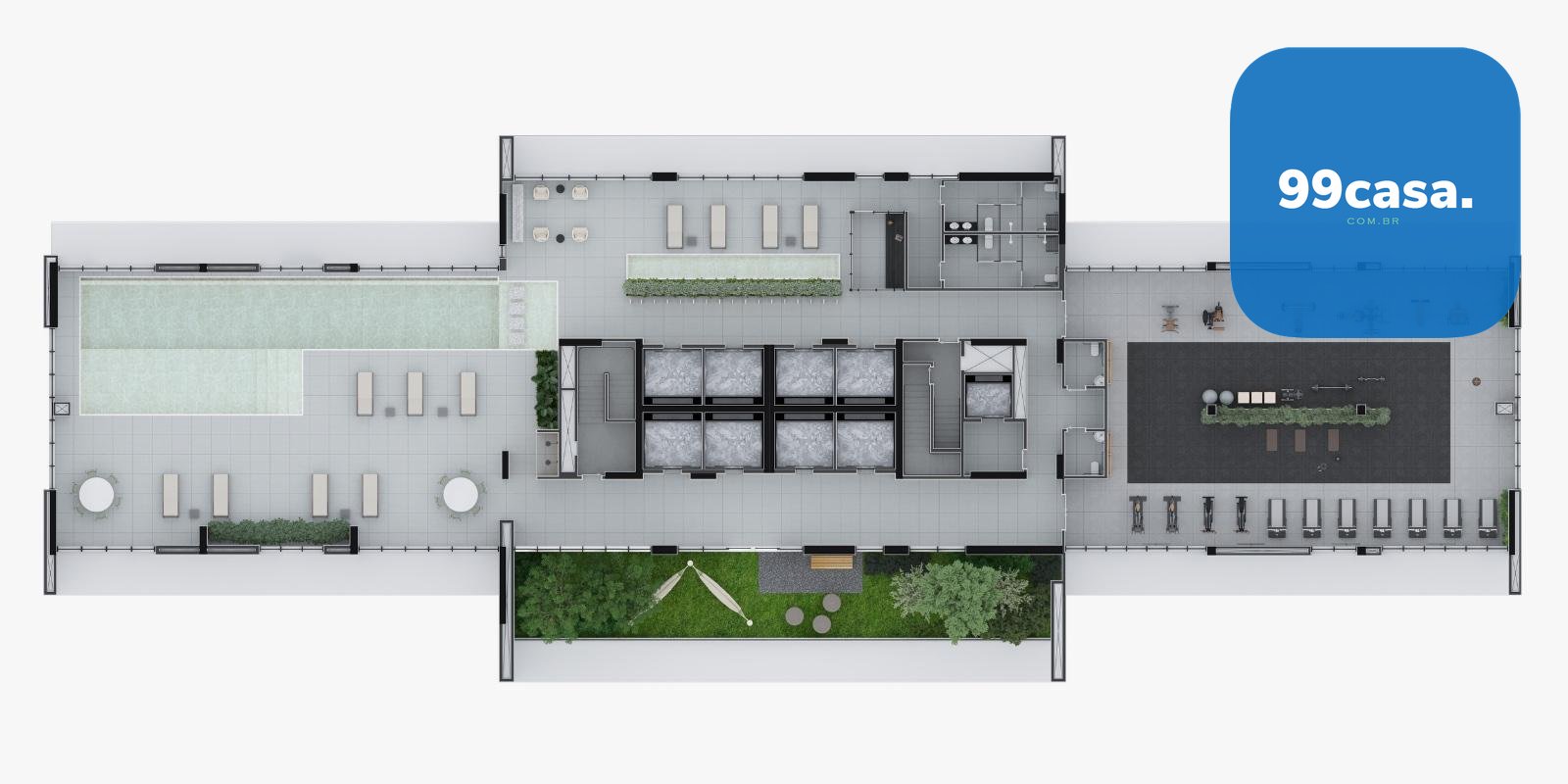 ÁTICO: piscina (coberta), academia, solarium, lounge externo, espaço welness