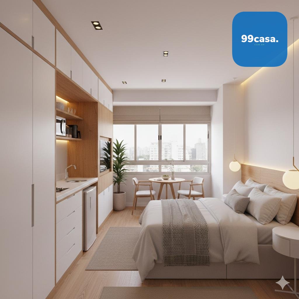 Um studio bem posicionado, em condomínio moderno e com excelente potencial de valorização.