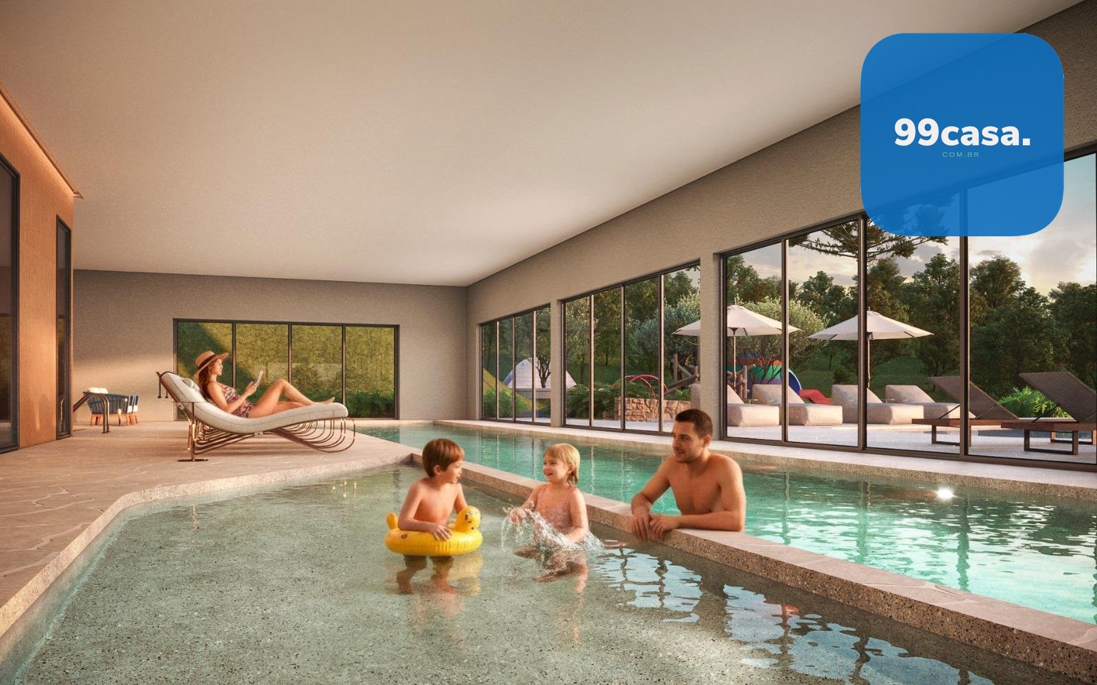 Complexo Aquático: Piscina externa com deck molhado e piscina coberta aquecida para aproveitar Curitiba em qualquer estação.