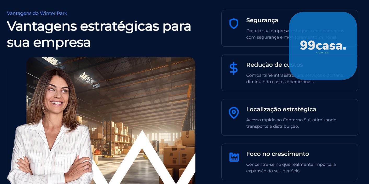 O Winter Park Empresarial conta ainda com um completo Hub Corporativo, com recepção, lobby, cinco salas de reuniões com diferentes capacidades e auditório para 63 pessoas, ideal para treinamentos, reuniões e eventos corporativos. As áreas de convivência incluem refeitório, vestiários, espaço para motoristas, delivery food e vending machines, proporcionando conforto, praticidade e economia compartilhada.