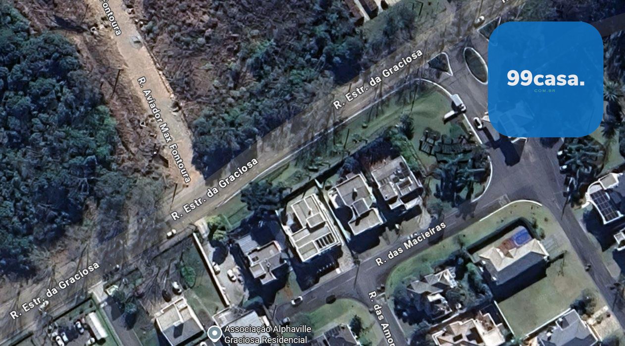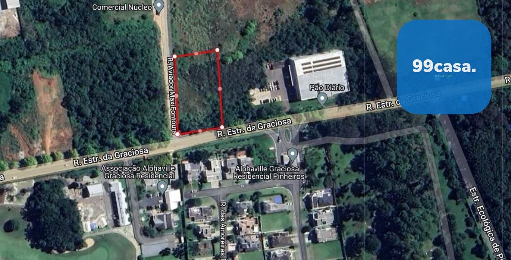 São 41 metros de frente para a estrada da Graciosa e 66 metros para a rua aviador Max Fontoura, que acabou de ser asfaltada agora no final de 2025. Também com 66 metros fazendo divisa com o Pão Diário.