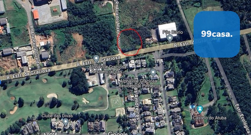 Terreno amplo de esquina localizado em frente ao Alphaville Pinheiros e ao lado do Pão Diário, na divisa de Pinhais com Colombo.